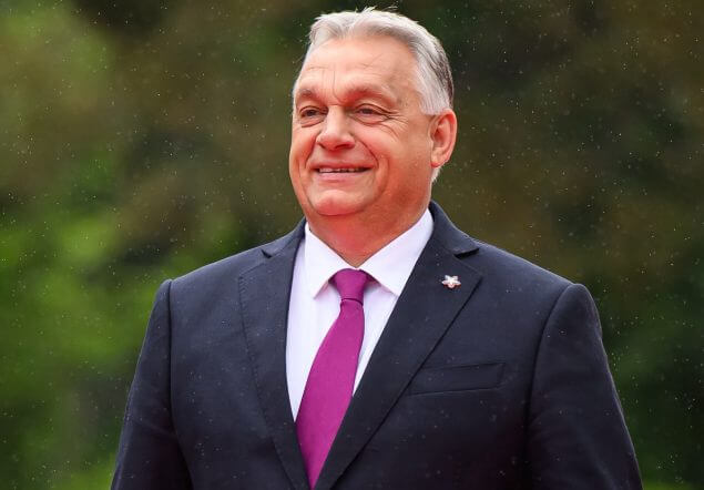 Starke Worte beim Audi-Start: Orbán lobt Ungarn als Zukunftsstandort – und attackiert Brüssel.APA/AFP/POOL/Leon Neal