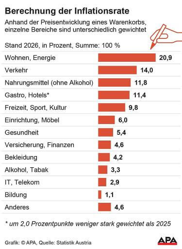 Einen leicht dämpfenden Effekt auf die ausgewiesene Inflationsrate hatte zudem die planmäßige Aktualisierung des VPI-Warenkorbs. Dieser wurde zum Jahresbeginn auf eine neue internationale Klassifikation umgestellt und an aktuelle Ausgabenstrukturen angepasst. Ohne diese Neugewichtung wäre die Teuerung im Januar um rund 0,1 Prozentpunkte höher ausgefallen. Grundlage für die Anpassung sind neueste Daten der privaten Haushaltsausgaben, unter anderem aus der Konsumerhebung 2024/25, die Anfang März im Detail präsentiert wird.
