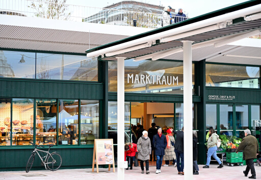 Am westlichen Ende des Wiener Naschmarkts können Besucher nun durch eine neue Markthalle flanieren: Das Gebäude mit der offiziellen Bezeichnung “Marktraum” ist am Freitag seiner Bestimmung übergeben worden. Zu finden sind darin 13 Stände bzw. Spezialitätengeschäfte mit vorrangig regionalen Produkten. Das Gebäude befindet sich auf einer bis vor kurzem unverbauten Fläche und verfügt auch über eine Dachterrasse.