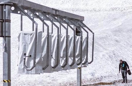 Ein Mitarbeiter der Gletscherbahnen beim einsammeln von Müll neben einer Skidata Skipass Kontrolle am Kitzsteinhorn, aufgenommen am 16. Juli 2019 in Kaprun, ÖsterreichAPA/EXPA/ JFK