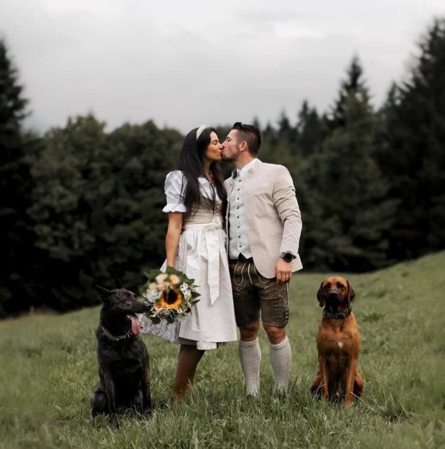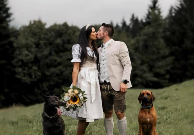 „Die Liebe hat gefragt, ich habe geantwortet“ – mit diesen Worten teilte Marcel Hirscher seinen ersten Beitrag auf Instagram. Das Foto zeigt ihn und seine Lucy in Tracht, im Grünen, ihre beiden Hunde fungierten als Ringträger. Abseits der Öffentlichkeit gaben sich die beiden bereits vor einigen Wochen in privatem Kreis das Jawort.