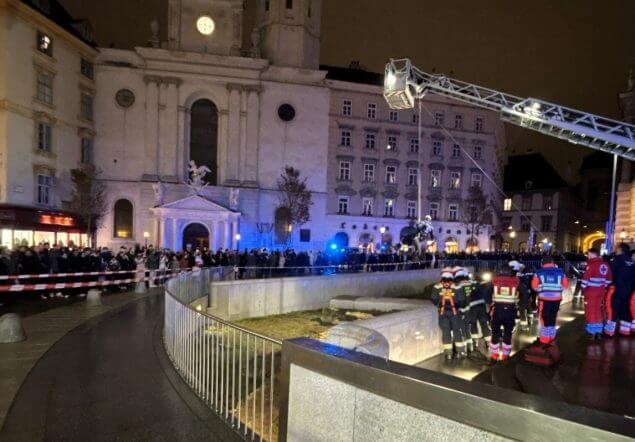Zu einem Rettungseinsatz ist es am Freitagabend, 14. November 2025, am Michaelerplatz in der Wiener Innenstadt gekommen. Ein 37-Jähriger war über die Brüstung an der historischen Ausgrabungsstätte in die Tiefe gestürzt. Augenzeugen betätigten den polizeilichen Notruf. In weiterer Folge wurde der gebürtige Rumäne von der Wiener Berufsfeuerwehr geborgen.APA/LPD WIEN