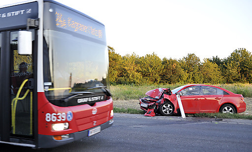 Schwerer Unfall in Alkoven: Ein Pkw kollidiert mit einem Linienbus, zwölf Verletzte, zwei schwer. (Symboldbild)APA/HANS PUNZ