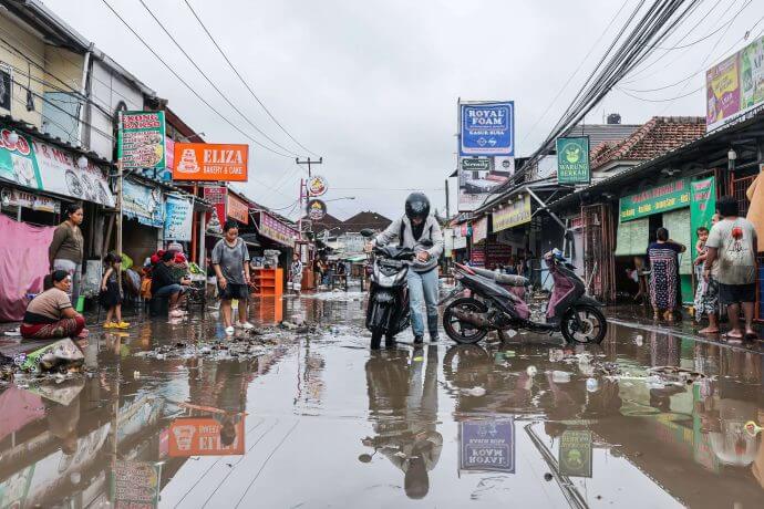 Überschwemmungen und Erdrutsche gehören in Indonesien zur Regenzeit zwischen November und März fast jedes Jahr zum Alltag. Die aktuellen Regenfälle gelten als heftig. Die für ihre Reisfelder, Tempel und Strände bekannte “Insel der Götter” Bali ist eines der beliebtesten Reiseziele in Indonesien und lockt jedes Jahr Millionen Besucher aus aller Welt.