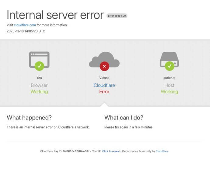 Seit Mittag ist das halbe Internet weltweit offline. Der Grund: eine Cloudflare-Störung. Mehrere Stunden lang waren zahlreiche Webseiten betroffen, darunter auch Online-Dienste wie WhatsApp, X und ChatGBT.