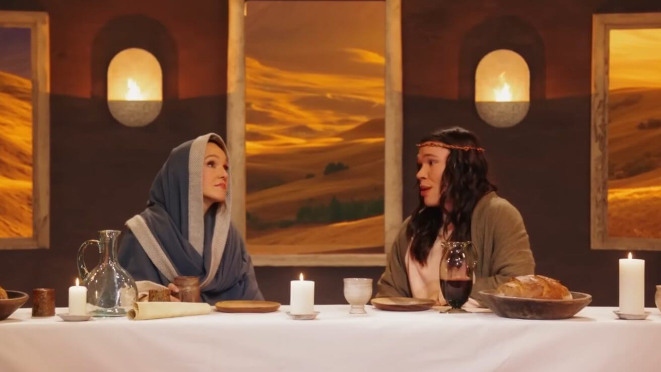 Am Ende legt Kebekus noch einmal nach: Sie reist ins Jahr 33 und trifft dort auf „Jesus Christus“. Gespielt wird er vom Comedian Helge Mark (31). In der Inszenierung tritt Jesus als „progressiver“ Sohn Gottes auf: Er führt eine Beziehung mit einem Mann, spricht sich für Feminismus aus und bewertet Verhütung, Scheidung und Abtreibung nicht als Sünde. Als Begründung fällt der Satz: „Wir sind alle Menschen, oder?“.