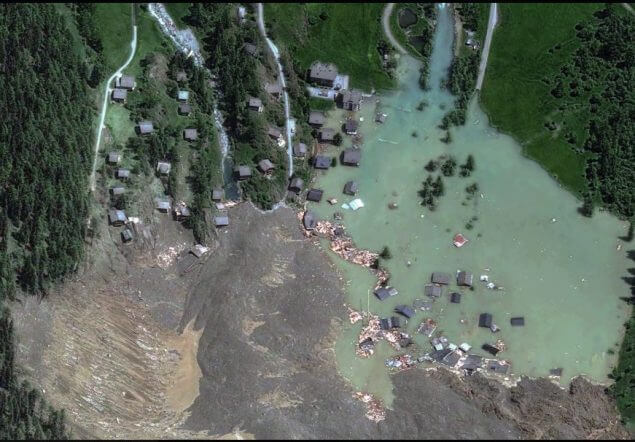 Over 3.5 million m³ of ice, rock, and snow collapsed from the Birch Glacier, putting 9 million tons of pressure on the glacier.