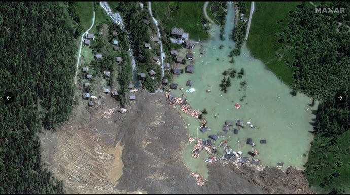 In der Schweiz wurde das Dorf Blatten durch drei Millionen Kubikmeter Geröll völlig zerstört. Zum Glück wurde die Bewohner vor dem Unglück evakuiert.