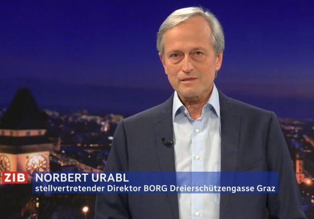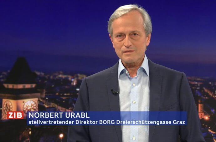 „Mehr Fragen als Antworten“: Der stellvertretende Direktor Norbert Urbal des Grazer Amoklauf-Gymnasiums schildert im ZiB2-Interview seine erschütternden Eindrücke von der Tat. Er findet lobende Worte für die Schüler.