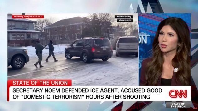 Trumps Heimatschutzministerin Kristi Noem verteidigt den tödlichen Polizeieinsatz und wirft CNN Faktenverdrehung vor.YouTube/CNN/Screenshot