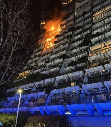 Die Feuerwehr war gegen 22.30 Uhr mit 18 Fahrzeugen ausgerückt. Bei deren Eintreffen bot sich ein spektakuläres Bild: Nicht nur die unmittelbare Wohnung war betroffen, auch deren sowie mehrere Balkone darüber standen in Flammen.