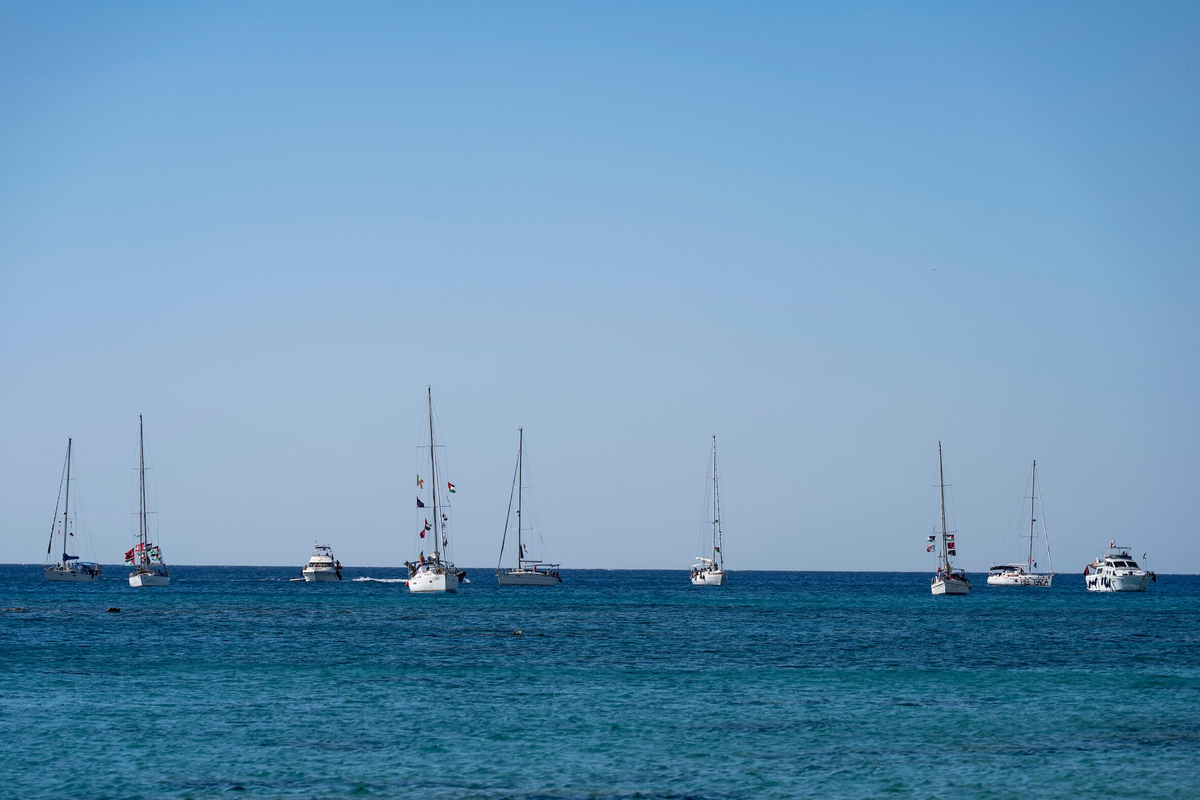 An Bord der rund 50 Boote befinden sich etwa 300 Teilnehmer aus 44 Ländern, darunter auch österreichische Aktivisten. Unter den Italienern sind zwei Parlamentarier und zwei EU-Abgeordnete.