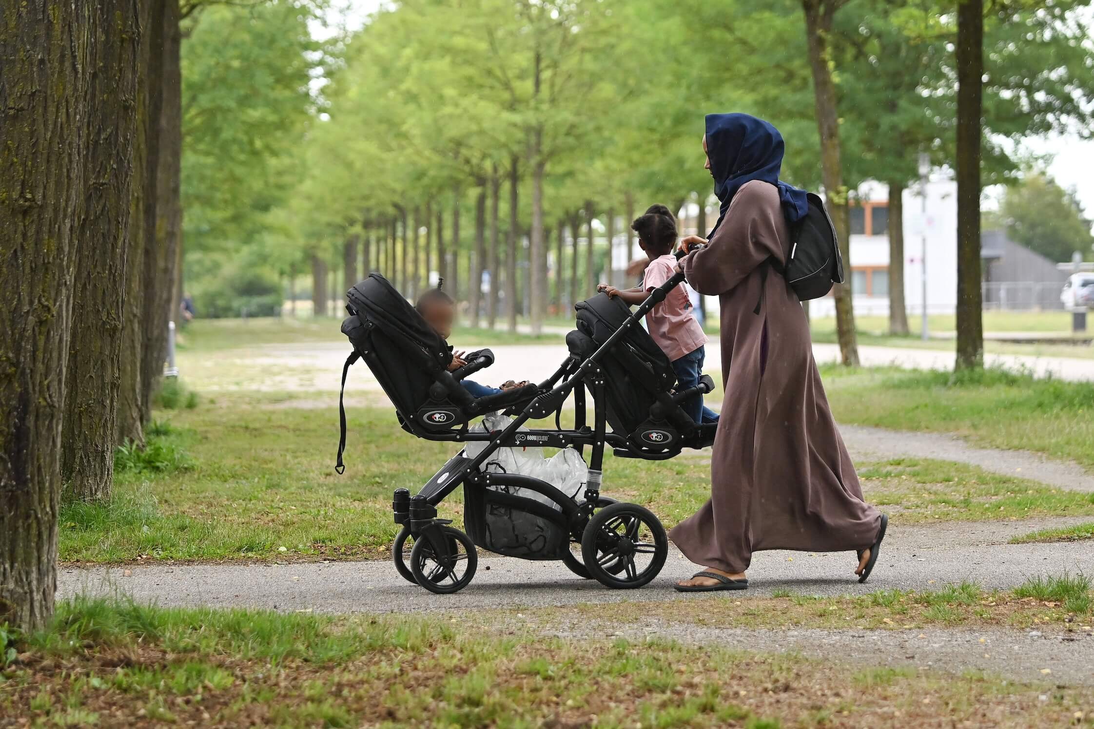 Besonders stark wachsen Zuwanderergruppen aus islamisch geprägten Ländern – wie hier eine Mutter mit zwei Kindern.IMAGO/Sven Simon