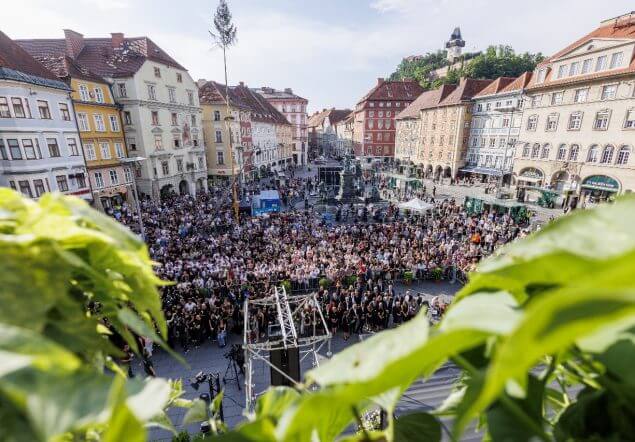 GRAZ – Am Sonntagabend, dem 15. Juni, zeigte Graz eindrucksvoll, was es heißt, zusammenzuhalten. Tausende versammelten sich am Hauptplatz, um im Rahmen der Gedenkveranstaltung „Wir halten zusammen“ gemeinsam der Opfer der tragischen Ereignisse an einer Grazer Schule zu gedenken.