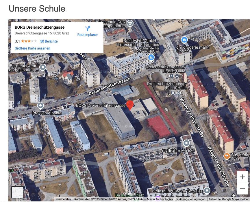 Das BORG Dreierschützengasse präsentiert sich auf seiner Webseite als engagierte Schule, die sich bemüht, den rund 400 Schülern in den 20 Klassen auch abseits der Wissensvermittlung gerecht zu werden. “Mehr als anderswo können wir uns nicht nur ausschließlich auf die Vermittlung von Wissen in unseren Fachgebieten beschränken”, heißt es auf der Webseite unter Verweis auf die Herausforderung angesichts wachsender sozialer Probleme.