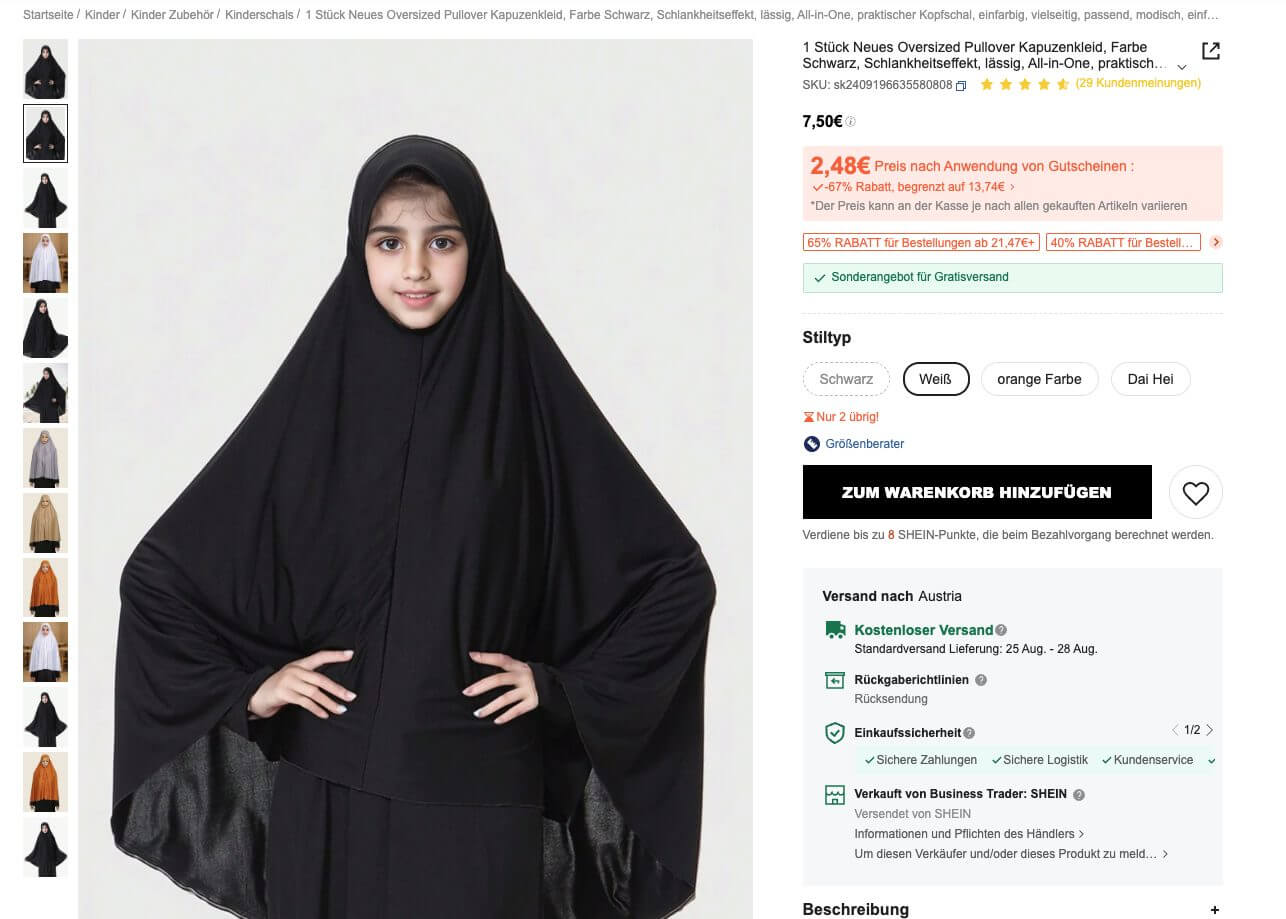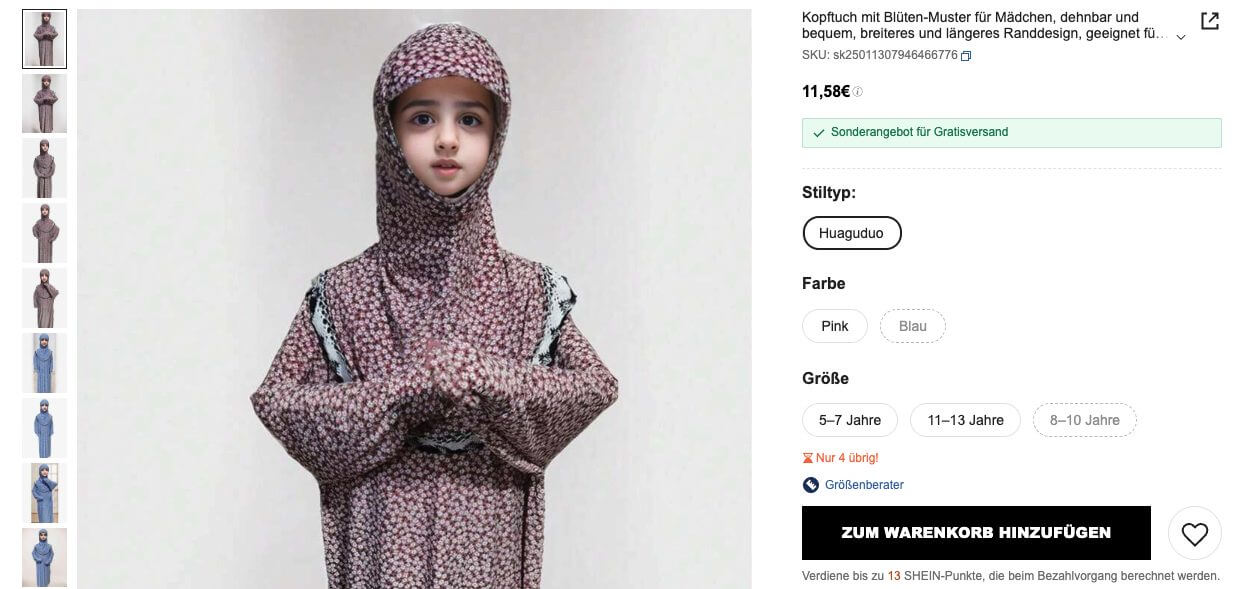 Dass Shein Kinder-Hijabs und Chadors für Mädchen verkauft, zeigt: In Europa gibt es anscheinend eine Nachfrage für derlei fragwürdige Produkte.