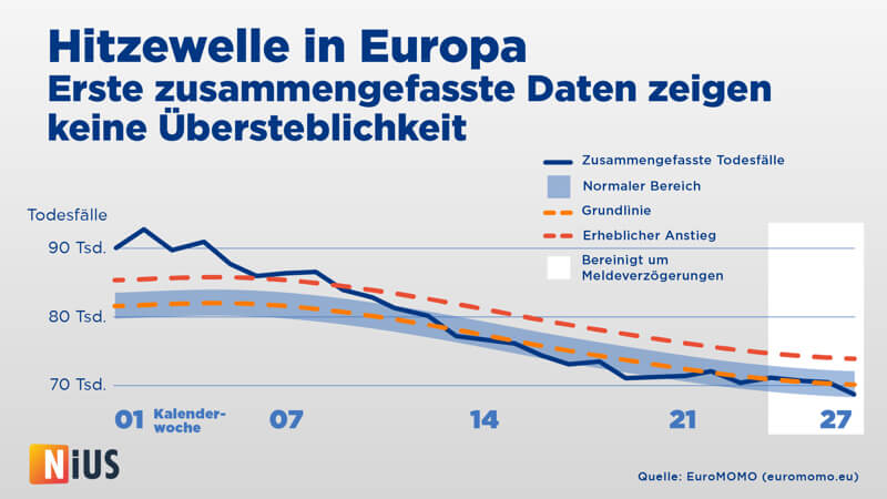 Die Daten zeigen: Im Zeitraum, in dem angeblich massenhaft Menschen wegen Hitze starben, wurde bislang keine Übersterblichkeit verzeichnet.