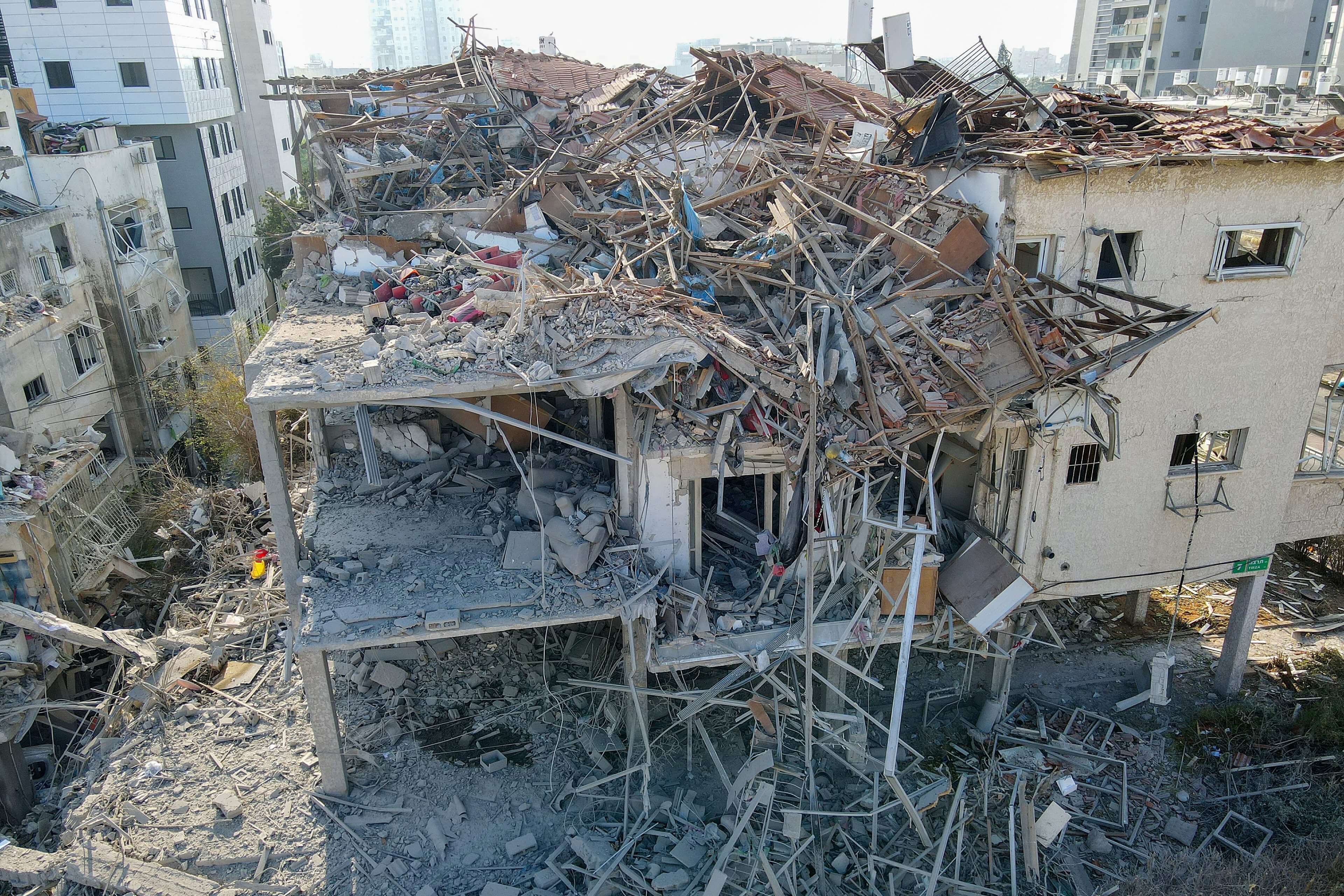 Eine aus dem Iran abgefeuerte Rakete traf Häuser in der israelischen Stadt Ramat Gan in der Nähe von Tel Aviv.APA/APA/AFP/Jack GUEZ