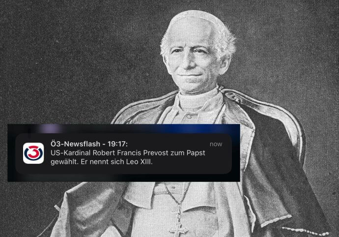 Peinlicher Zeitsprung im Ö3-Newsflash: „US-Kardinal Robert Francis Prevost zum Papst gewählt. Er nennt sich Leo XIII.“ – so lautete die Nachricht am Donnerstag auf Ö3. Nur ein kleines Problem: Leo XIII. war bereits von 1878 bis 1903 Papst – und ist seit 122 Jahren tot.