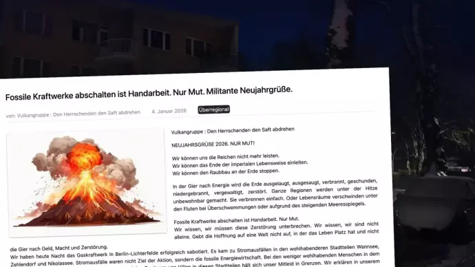 Die linksextreme Vulkangruppe beansprucht den Anschlag auf das Berliner Stromnetz für sich. In der Folge verbringen mehrere Zehntausend Haushalte in Berlin das Wochenende ohne Strom und Heizung.