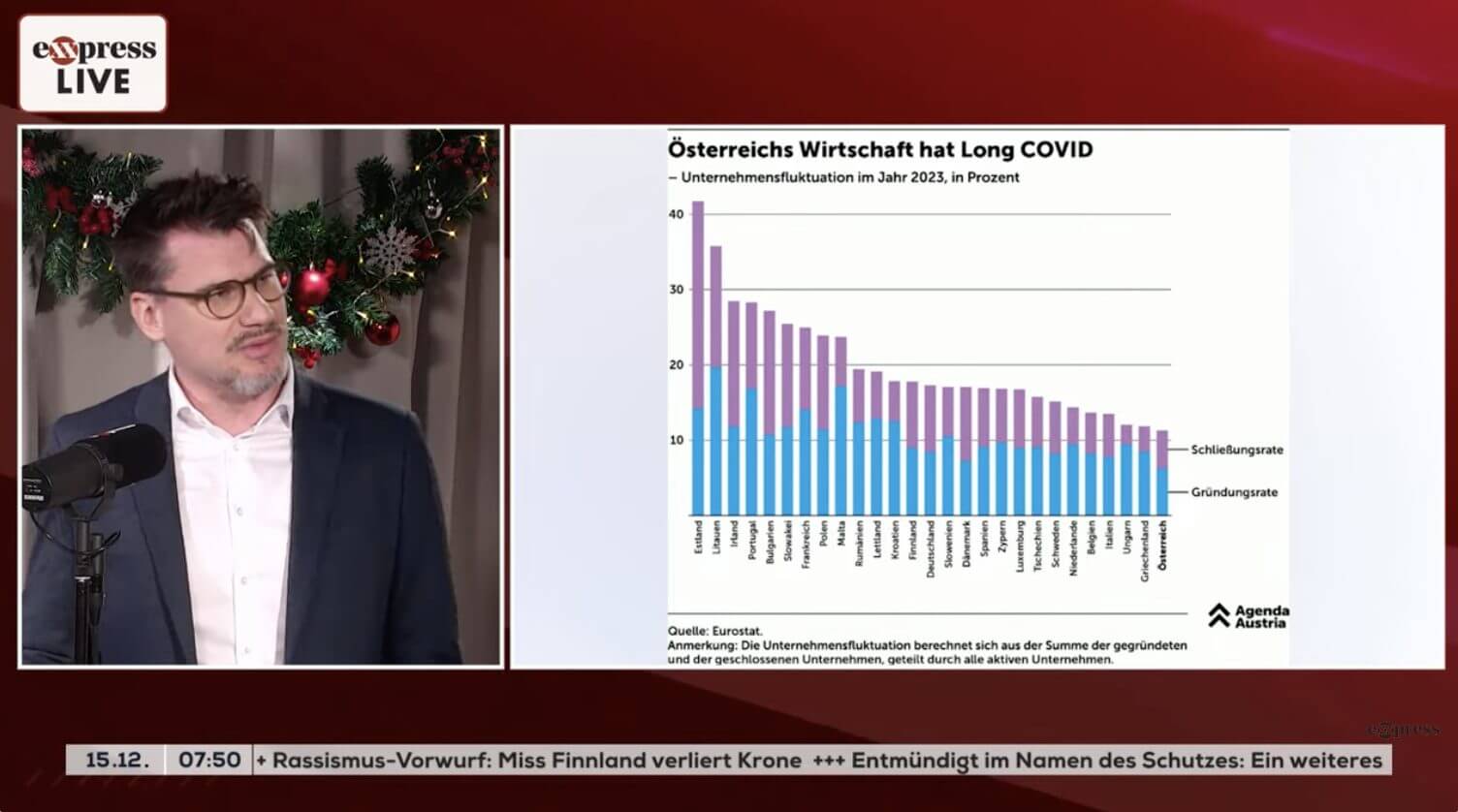 In exxpress live wurde am Montagmorgen über den Zustand der österreichischen Wirtschaft diskutiert. Zu Gast: Politik-Experte Ralph Schöllhammer und der stellvertretenden Direktor der Agenda Austria Hanno Lorenz. Im Fokus stand die neue Beleglotterie – und die Frage, ob gute Laune Reformen ersetzen kann.