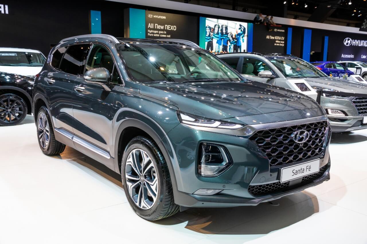 – Hyundai Santa Fe – das Topmodell von Hyundai mit mutigem, kubistisch angehauchtem Design, riesiger Heckklappe, Van-ähnlichem Platzangebot, cleveren Details wie UV-Desinfektion im Handschuhfach und fairer Preisgestaltung im Vergleich zur deutschen Konkurrenz.