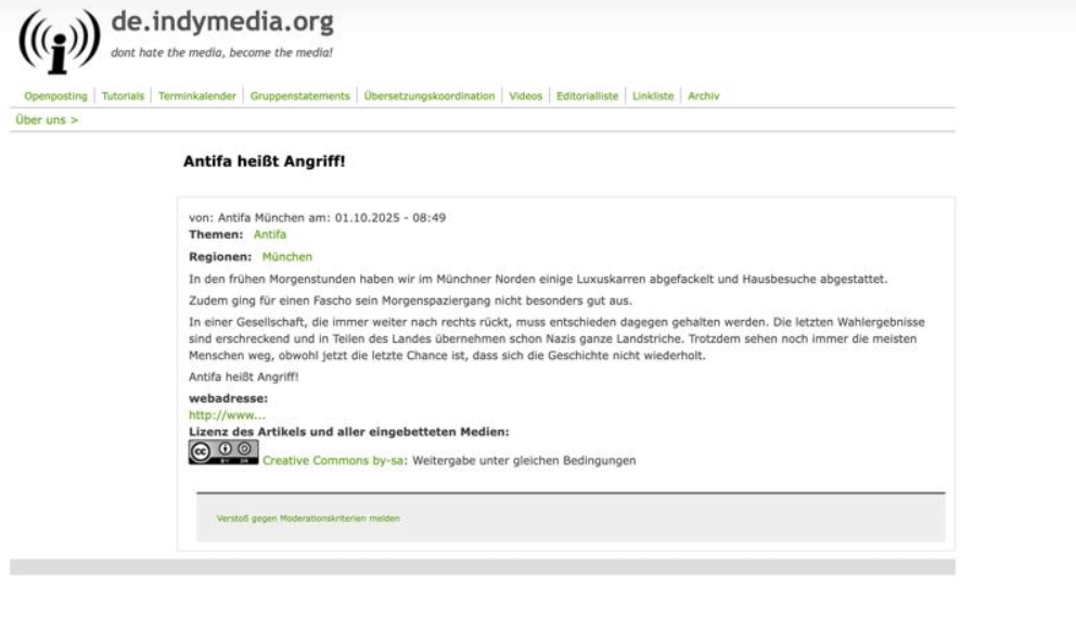 Laut eigenen Angaben prüft die Polizei außerdem einen Zusammenhang mit der Antifa. Auf der Website indymedia.org wurde am frühen Morgen ein Text gepostet mit dem Titel „Antifa heißt Angriff“. Darin hieß es: „In den frühen Morgenstunden haben wir im Münchner Norden einige Luxuskarren abgefackelt und Hausbesuche abgestattet. Zudem ging für einen Fascho sein Morgenspaziergang nicht besonders gut aus.“