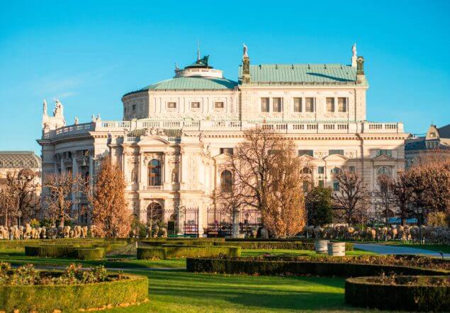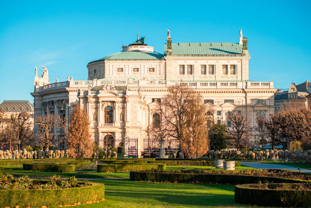 Blick über den berühmten Volksgarten, einen öffentlichen Park in Wien, mit dem historischen Burgtheater – dem österreichischen Nationaltheater – im Hintergrund.GETTYIMAGES/Andrew Michael