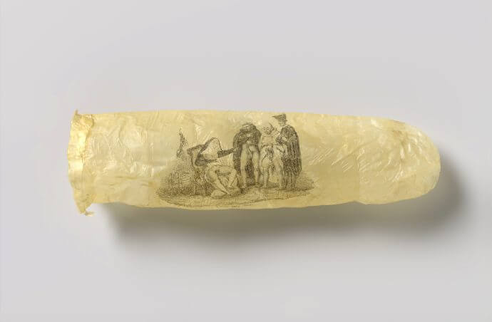 Das Rijksmuseum in Amsterdam stellt ein fast 200 Jahre altes Kondom aus, das mit einer erotischen Zeichnung von einer Nonne und drei Geistlichen versehen ist. Möglicherweise handele es sich bei dem Kondom, das vermutlich aus dem Blinddarm eines Schafes gefertigt wurde, um ein Souvenir aus einem Bordell, teilte das Museum mit. Davon seien – soweit bekannt – nur zwei Exemplare erhalten geblieben.