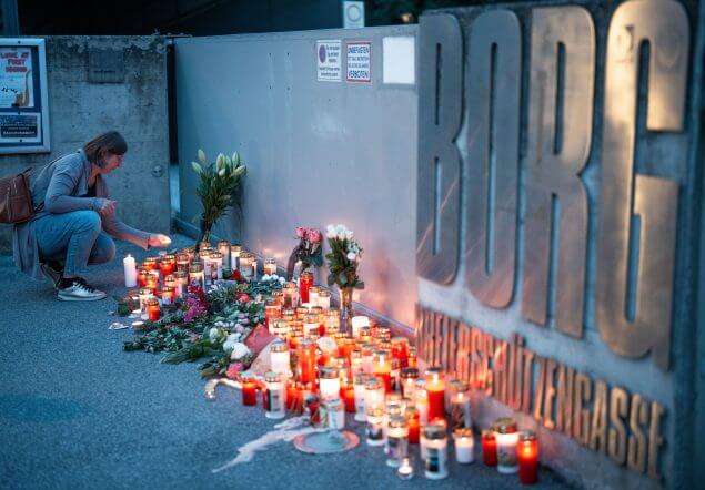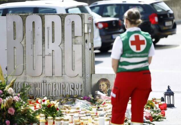 Kerzen und Blumen werden vor dem Schulgebäude niedergelegt: Nach und nach werden die erschütternden Details des Massenmords bekannt.APA/GEORG HOCHMUTH