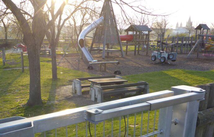 Unbekannte haben am Sonntagabend auf einem Kinderspielplatz bei der Kaisermühlenbrücke auf der Wiener Donauinsel Sprengversuche durchgeführt und dabei eine Holzpyramide mit einer Rutsche schwer beschädigt. Laut Polizeisprecher Philipp Haßlinger wurde die Tat gegen 20.45 Uhr verübt. Vermutlich benutzten sie dafür einen Blitzknallkörper oder mehrere davon.