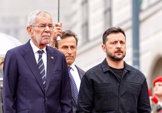 Selenskyj seinerseits bekundete im Namen seines Landes zunächst sein Beileid im Hinblick auf den Amoklauf in Graz. Unter Hinweis auf die anhaltenden russischen Angriffe auf die Ukraine, sagte Selenskyj, dass die Ukraine alles unternehmen wolle, um diesen Krieg zu stoppen. Die dafür notwendigen Schritte seien ein „Waffenstillstand, ehrliche Diplomatie und eine Garantie der dauerhaften Sicherheit“. Sein Zusatz: „Derzeit haben wir das aber nicht“.