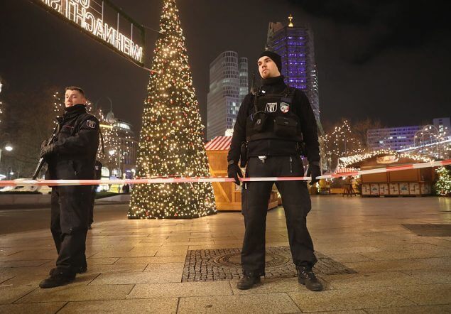 Berlin, 19. Dezember 2016: Polizei am Breitscheidplatz nach dem Lkw-Terror. Seit damals gelten Weihnachtsmärkte europaweit als Hochrisiko-Ziele.GETTYIMAGES/Sean Gallup