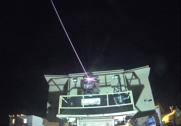 Laser feuert! Israels neues Abwehrsystem „Iron Beam“ im Testeinsatz.APA/AFP/Israeli Ministry of Defence
