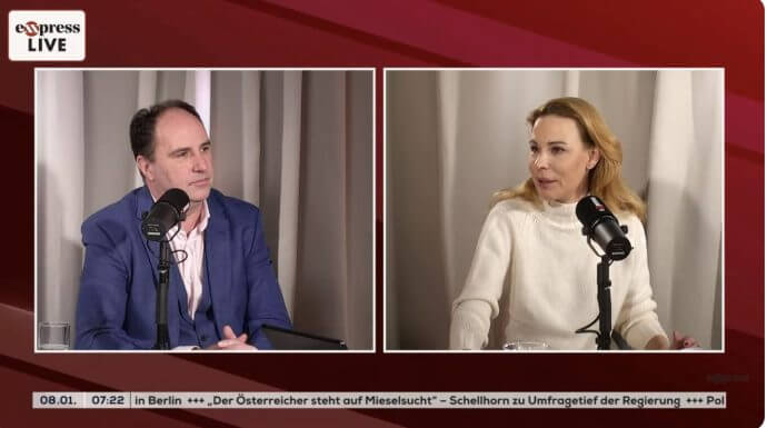 Bei exxpress live diskutierten Herausgeberin Eva Schütz und Unternehmer Gerald Zmuegg über den Antifa-Prozess nach dem Akademikerball, die Rolle der Justiz und politische Maßstäbe. Im Mittelpunkt standen eine brisante Richterinnen-Aussage – und eine parlamentarische Anfrage der FPÖ, die Fragen zur wirtschaftlichen Situation rund um Staatssekretär Sepp Schellhorn aufwirft.