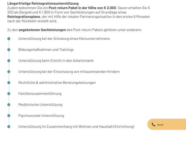 Das Rückkehrprogramm für Migranten, das unter der Website Return from Austria betrieben wird, bietet sowohl finanzielle als auch organisatorische Unterstützung für Menschen, die Österreich verlassen möchten. Wie exxpress bereits im Dezember 2024 berichtete umfasst das Rückkehrpaket bis zu 4.000 Euro an Leistungen. Dieses setzt sich zusammen aus 1.000 Euro für die Rückkehrhilfe, 200 Euro als schnelle Hilfe bei der Ankunft im Herkunftsland und 2.800 Euro in Sachleistungen für medizinische, psychosoziale Unterstützung und Hilfe bei der Gründung eines Kleinunternehmens. Abgesehen davon werden auch die Flugkosten übernommen.