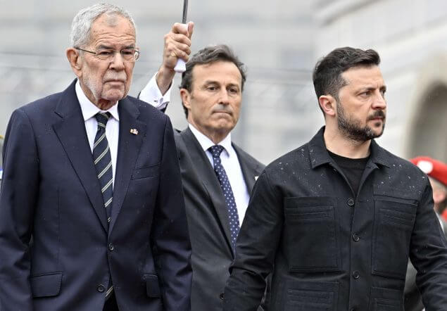 (v.l.) Bundespräsident Alexander Van der Bellen beim Empfang des ukrainischen Präsidenten Wolodymyr Selenskyj am 16. Juni 2025 vor der HofburgAPA/HANS KLAUS TECHT