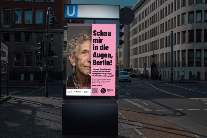 Diese Realität soll durch „persönliche Stimmen“ auf Plakaten in der ganzen Stadt greifbar werden. Zwei Beispiele: „Als trans* Mensch habe ich mich verstecken müssen, habe gelitten und gekämpft, um endlich ich selbst zu sein!“ Oder: „Ich bin jetzt 72 und stolz, offen lesbisch zu leben. Älterwerden darf nicht heißen, sich wieder verstecken zu müssen!“