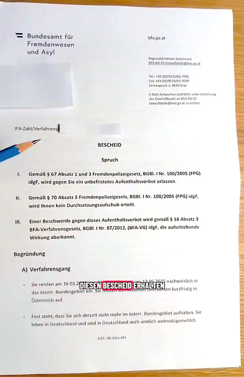 Bayan selbst machte den Bescheid öffentlich – per Video. Darin folgten neue Angriffe gegen österreichische Behörden, gegen Israel und gegen Kritiker. Aussagen dieser Art gelten bei Sicherheitsbehörden als problematisch, weil sie genau jene Risiken illustrieren, die nun offiziell festgestellt wurden.