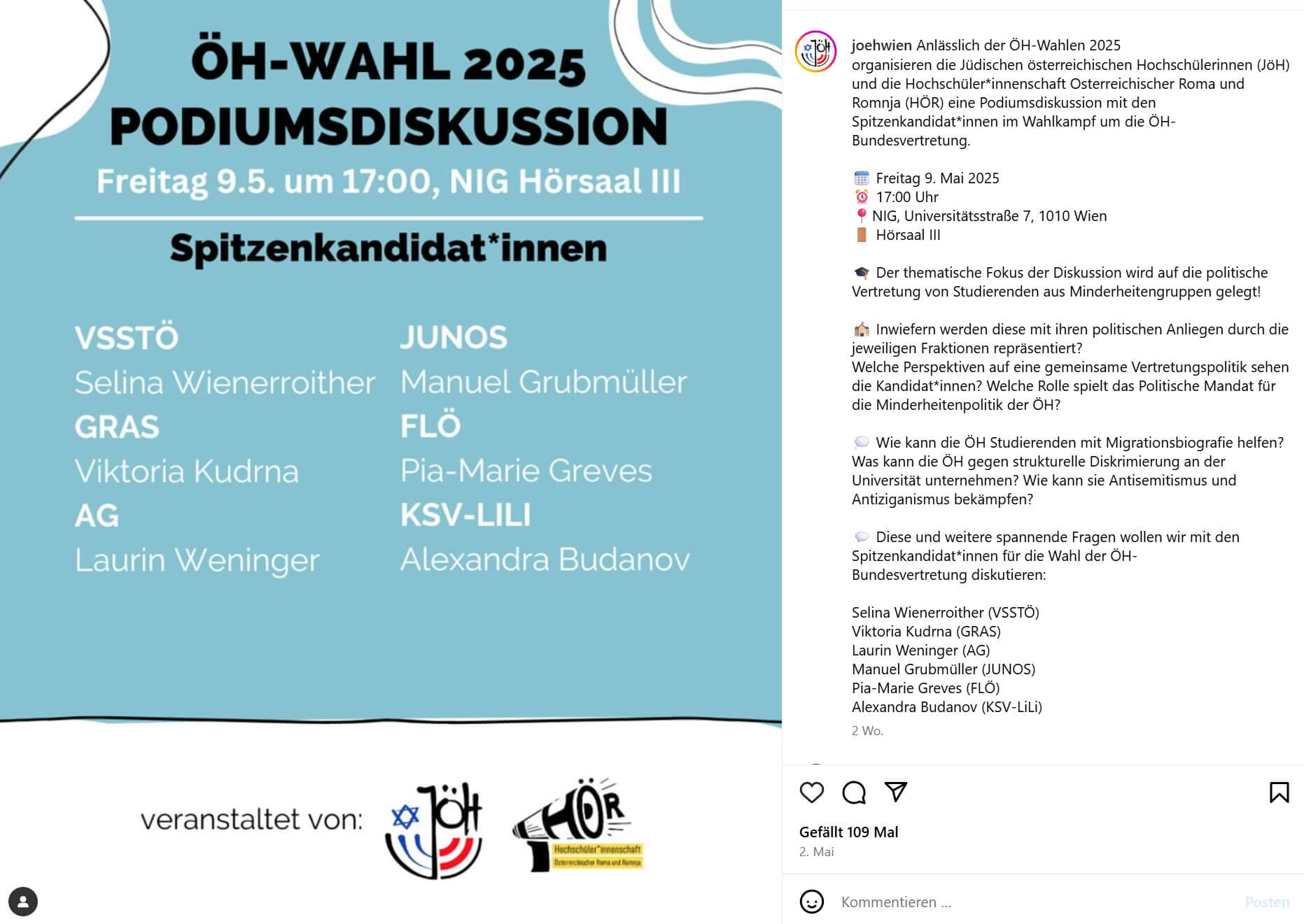 Zur JöH pflege man eine “wertschätzende” Beziehung, auch in der letzten ÖH-Periode habe man diverse Veranstaltungen gemeinsam organisiert.