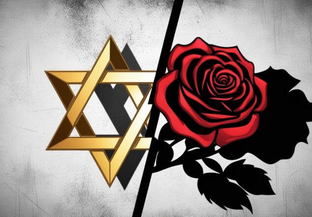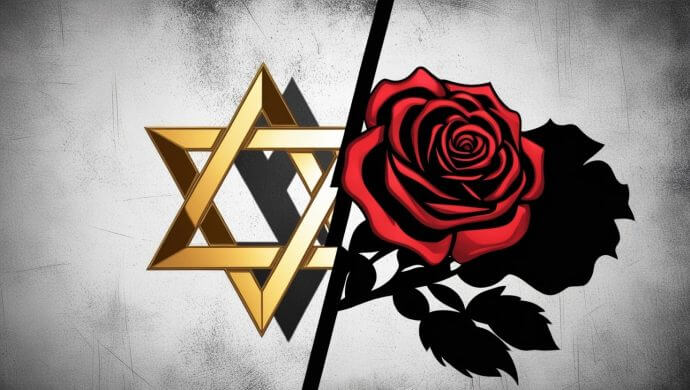 Beim Judentum ist der Davidstern symbolisch repräsentativ, während Sozialdemokraten eine Rose als Logo verwenden.Canva/KI