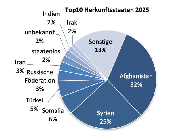 Afghanistan bleibt damit einer der ganz wenigen Herkunftsstaaten, die trotz des massiven Rückgangs insgesamt deutlich zulegen – und stellte zuletzt sogar die größte Gruppe der Asylwerber.