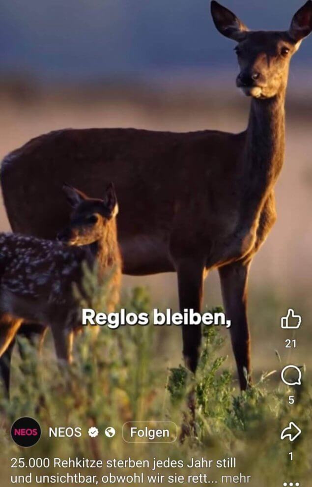 In einem aktuellen Video auf der Facebookseite der NEOS kommt es zu peinlichen Verwechslungen. Unter dem Deckmantel der Rehkitzrettung inszenieren sich die Pinken als Tierschutzversteher, doch was folgt, ist ein peinliches Eigentor. Statt Bilder von Rehen sind Hirsche, statt Traktoren sind Mähdrescher zu sehen.