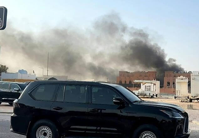Several blasts were heard and smoke was seen rising over the Katara District in Qatar’s Doha on September 9.
