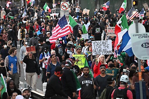 Die Entsendung “ausgebildeter Kriegssoldaten” sei “beispiellos und bedroht den Kern unserer Demokratie”, so Kaliforniens Gouverneur Gavin Newsom am Dienstag. Trump warf Newsom indes bei einem Auftritt auf dem Militärstützpunkt Fort Bragg im US-Bundesstaat North Carolina Komplizenschaft mit den Demonstranten vor. Kaliforniens Gouverneur Newsom und LA-Bürgermeisterin Bass, hätten “Unruhestifter, Aufwiegler und Aufrührer bezahlt”, behauptete Trump. “Sie sind an diesem vorsätzlichen Versuch beteiligt, das Bundesgesetz außer Kraft zu setzen und die Besetzung der Stadt durch kriminelle Eindringlinge zu unterstützen.” Der US-Präsident sprach von einem “voll entfalteten Angriff auf den Frieden, die öffentliche Ordnung und unsere nationale Souveränität”. Die Demonstranten seien “Randalierer mit ausländischen Flaggen, mit dem Ziel, eine ausländische Invasion in unserem Land fortzusetzen”.