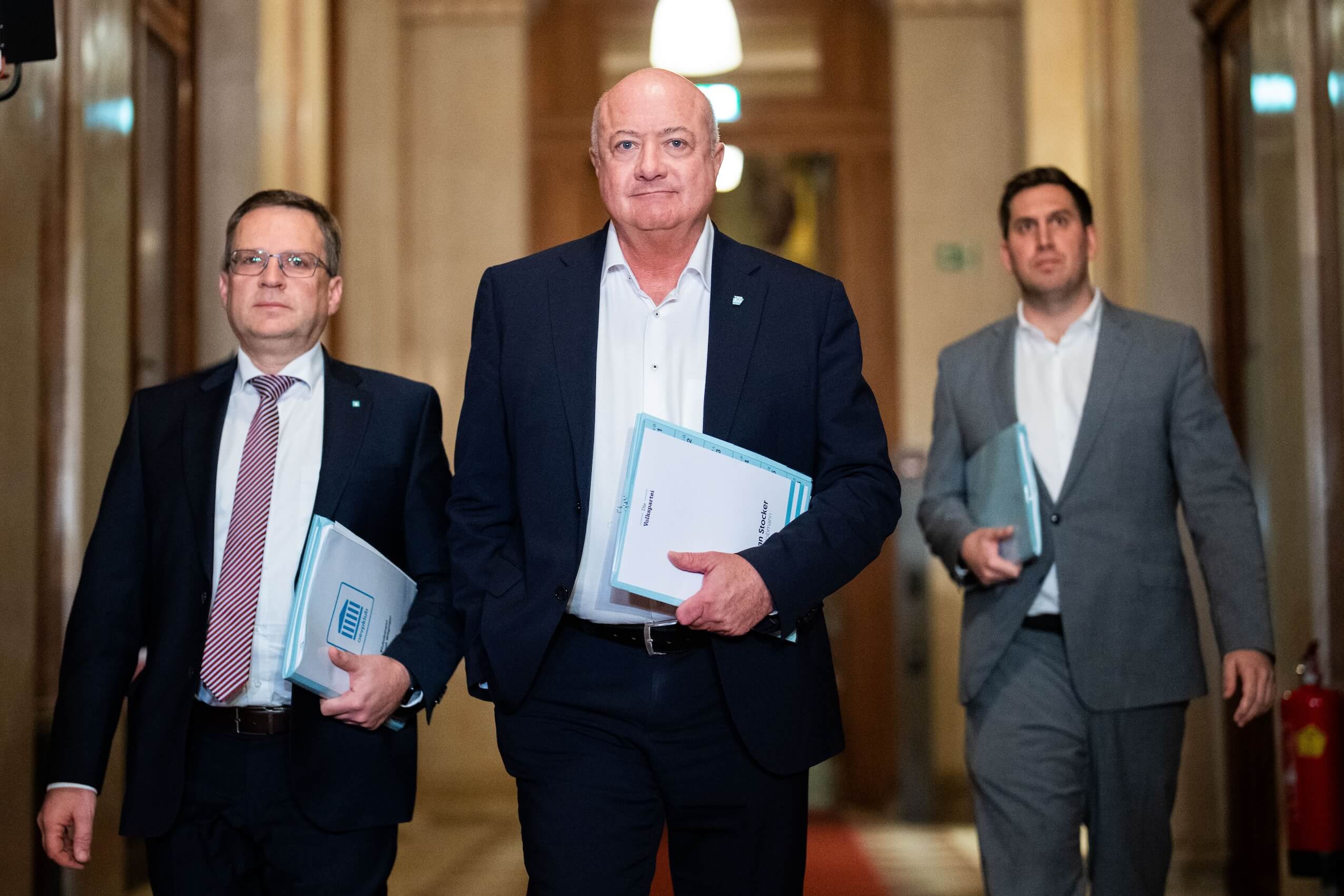 Die Koalitionsverhandlungen befinden sich offenbar in einer entscheidenden Phase. V.l.n.r.: Klubobmann August Wöginger, ÖVP-Obmann Christian Stocker und Generalsekretär Alexander Pröll.APA/GEORG HOCHMUTH