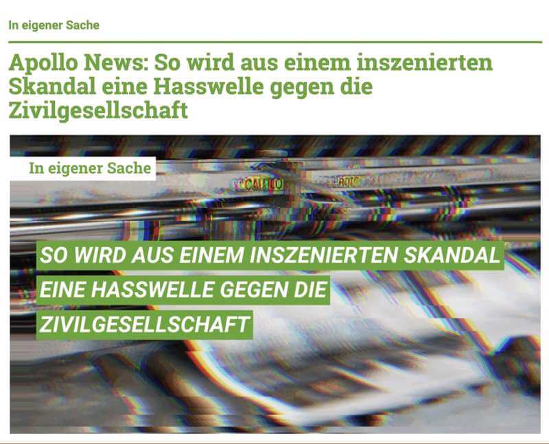 Anstatt sich bei Apollo News zu entschuldigen und Ayyadi von ihren Diensten für Belltower zu entbinden, betreibt die Stiftung eine perfide Täter-Opfer-Umkehr. Der Pressesprecher Robert Lüdecke veröffentlichte am 13. Oktober einen Artikel, in dem er die Kritik an der Stiftung und ihrer Mitarbeiterin als „Hasswelle gegen die Zivilgesellschaft“ bezeichnet, „eine orchestrierte Kampagne, angeführt von Apollo News“, so heißt es in der Einleitung des Textes.