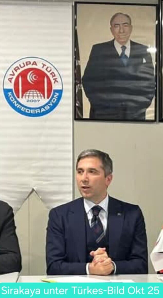 Auch nicht mit dem stellvertretenden AKP-Chef Zafer Sirakaya, der in Österreich ohnehin quasi Dauergast ist und nicht einmal Kritik erntet, wenn er – wie im vergangenen Oktober geschehen – die Vorarlberger Dependance der „Grauen Wölfe” aufsucht. Dort hatte er unter einem Porträt von Alparslan Türkes referiert. Der Gründer der rechtsextremen, mit Erdogans AKP koalierenden MHP und der nationalistisch-islamischen Ülkücü-Bewegung (= „Graue Wölfe”) war im Zweiten Weltkrieg Hitlers Kontaktmann in der Türkei. Seine Reden garnierte er gern mit Zitaten aus „Mein Kampf”. Nichtsdestotrotz hängen seine Porträts in den Vereinslokalen der Avusturya Türk Federasyon (ATF), dem Österreich-Ableger der MHP.