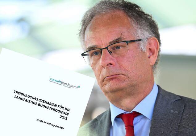 Finanzminister Marterbauer (SPÖ) beauftragte das Bundesumweltamt mit einer Studie, die eine Millionenstrafe für Österreich aufgrund verfehlter Klimaziele prognostiziert.APA/HELMUT FOHRINGER/Bundesumweltamt/Studie/Screenshot