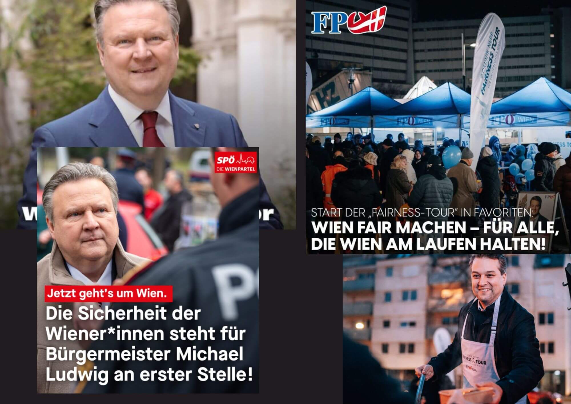 Eine Collage einiger Instagram-Post von den Wiener Parteien SPÖ und FPÖ.Screenshots Instagram / michaelludwig_official / spoe_wien / fpoe_wien / dominik_nepp
